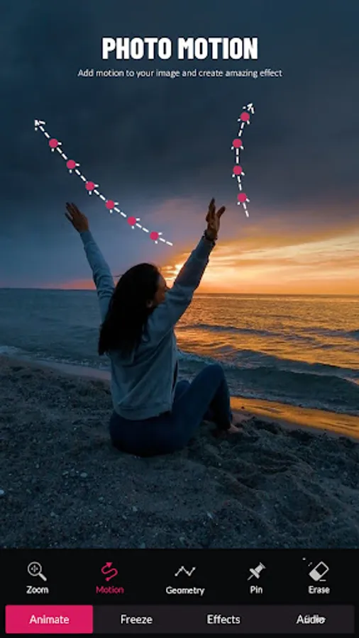 This app is a motion video editor to gives life to your photos and videos, now you can apply Motion Stills and natural moves to your pictures. Add a fantastic cinemagraph effect to your image, just select any area in the picture and add motion and cinemagraph effects to the image and picture. make living photos right now!