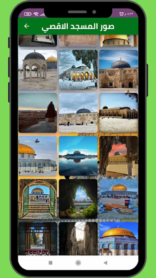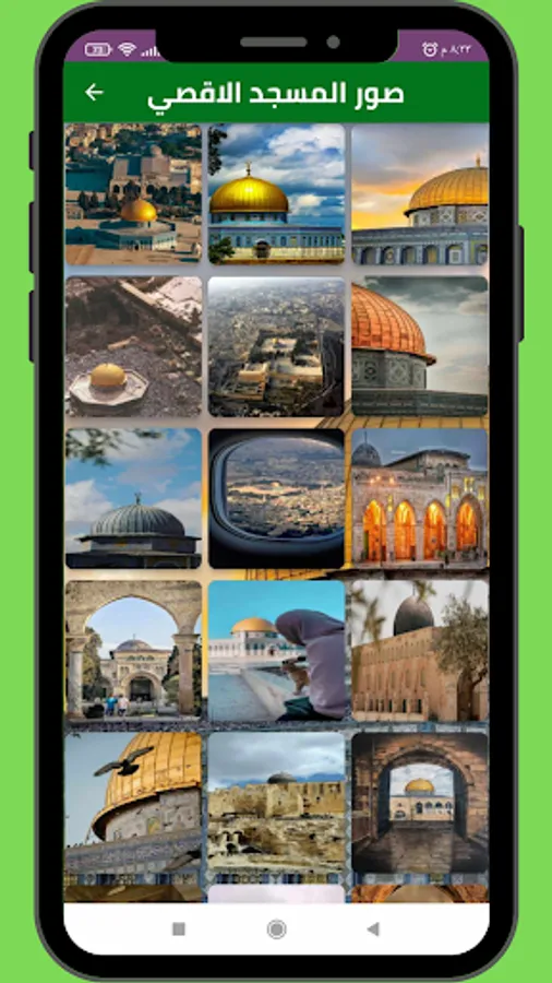The application contains pictures of Jerusalem and Al-Aqsa Mosque 2023
