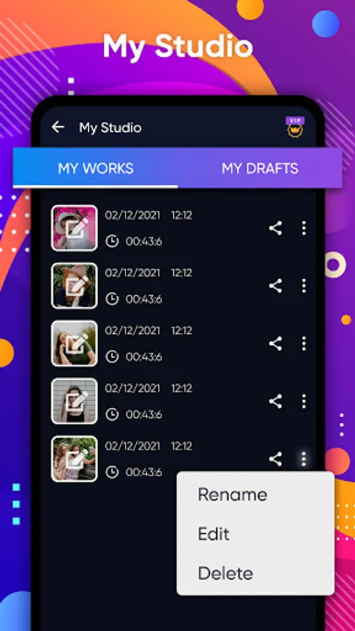 Video maker provides 720P/1080P HD export with no quality loss and no duration limit. You can save the video or slideshow to your draft or album at any time. Besides, blurred background and voice enhancement features make the video and slideshow more appealing.