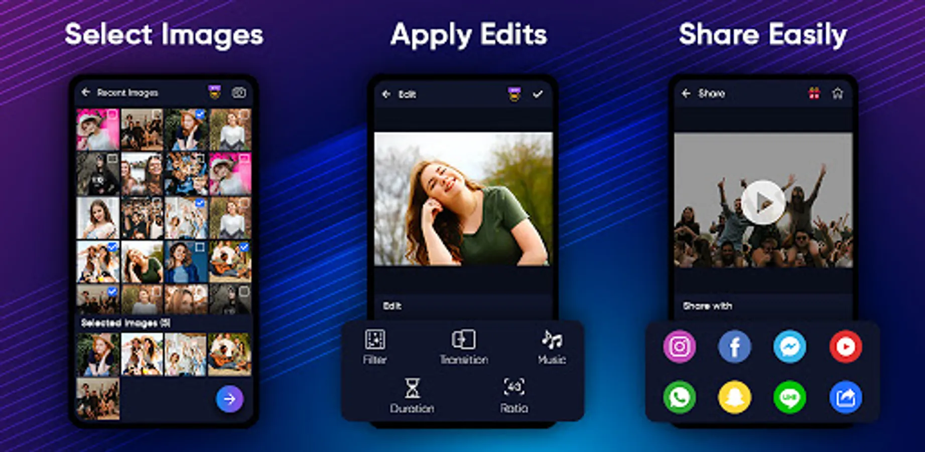 Slideshow maker is the best video maker and Audio Extractor app to merge photos into a slideshow with music. Movie Maker is an easy-to-use app to create beautiful and amazing photos that slide shows on YouTube, TikTok, Facebook, Instagram, WhatsApp, and Twitter. With video maker, you can express yourself using your beautiful photos at a birthday party or ceremony using music, transitions, animation stickers, and text.