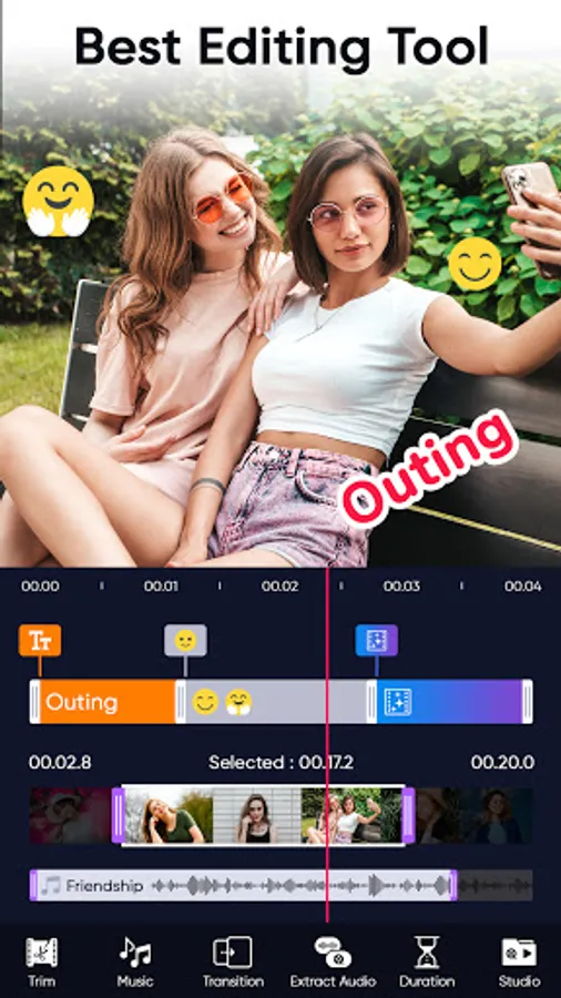 Video Editor offers excellent video editing features. With this movie maker or slideshow app, you can transform all your best events into memorable videos, and it is easy and fun. Young filmmakers can splice videos with texts, FX, effects, trendy filters, transitions, or live dubbing in a creative and personalized way. Make your own vlog, interesting memes, and funny video. Record your precious moments like wedding/birthday/Valentine's Day/Thanksgiving Day/Christmas Eve/Christmas/Halloween.