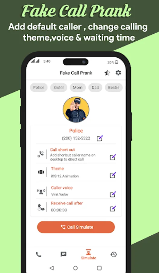 - Customize fake caller name, phone number, caller photo for a new fake call