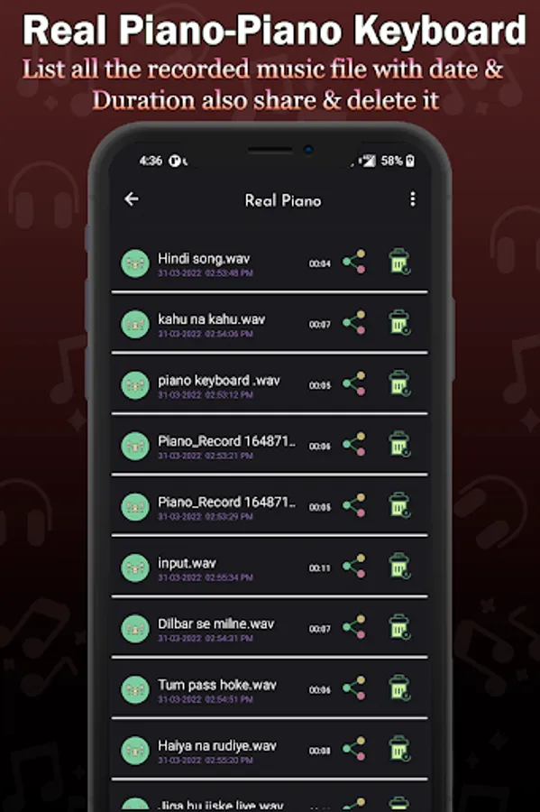 - Piano keyboard record on-screen performance and instantly share on soical media !