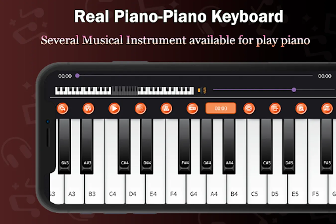 Real Piano app with musical instruments to help you learn chords and music notes for free! Learn how to play the piano keys in many interesting ways!