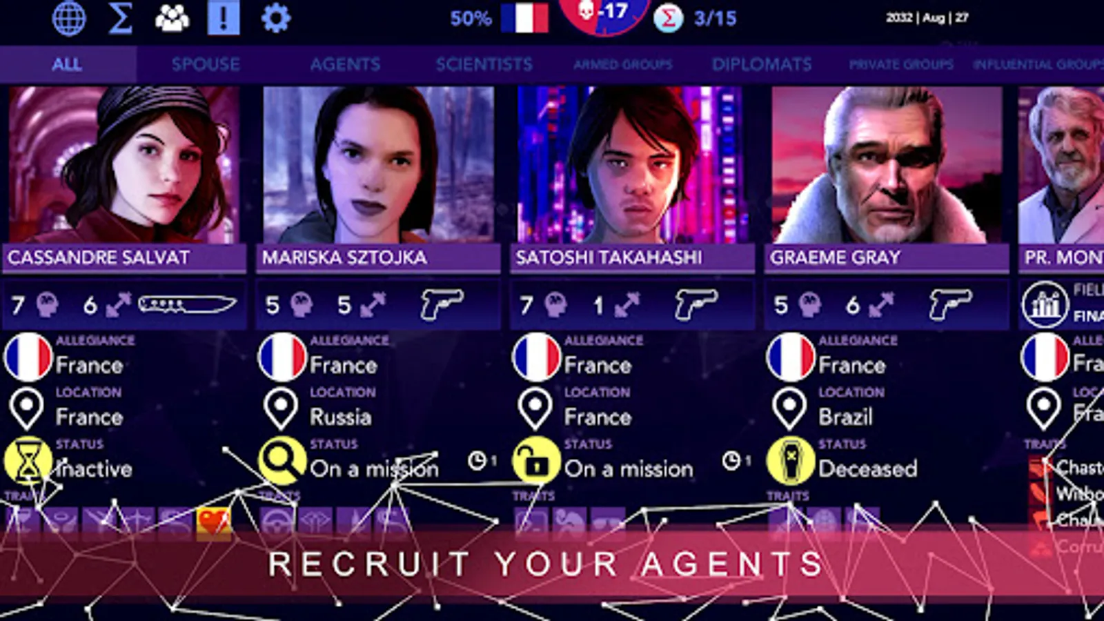 Turn-based espionage: Use your special agents to dominate the world. Seduction, blackmail, manipulation, industrial espionage… Every low blow is both permitted and encouraged.