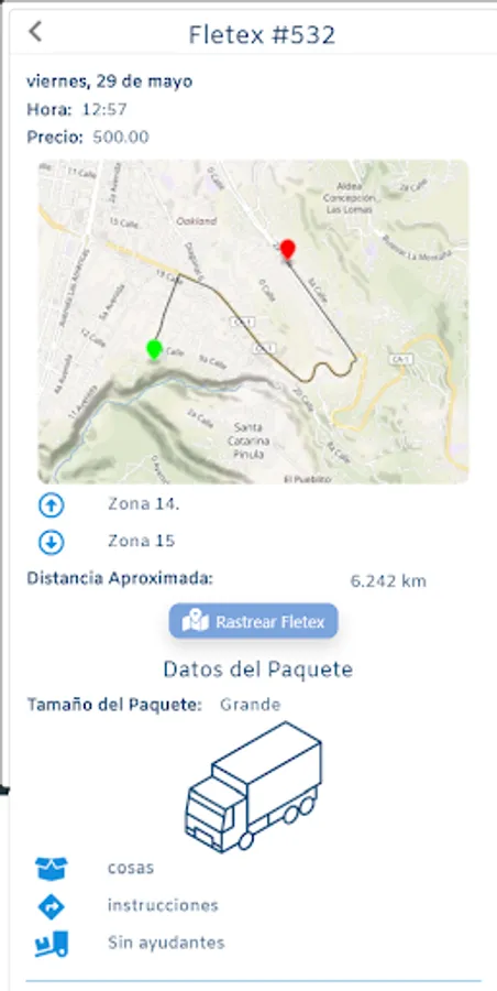 Sistema de comunicación de texto entre piloto y cliente, una vez iniciado el flete.