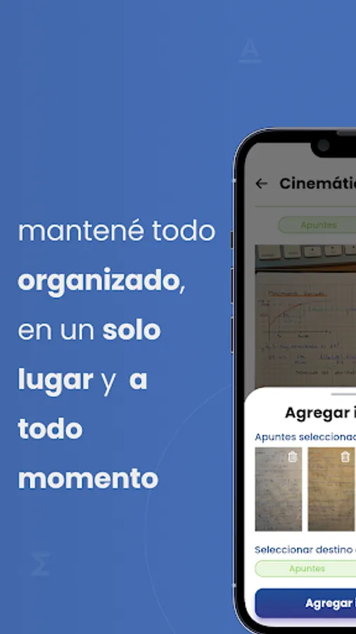 ¡Mantén tus apuntes y las imágenes de la pizarra de clase organizados en un solo lugar con Appuntes! Nuestra aplicación está diseñada específicamente para facilitar el acceso, la organización y el almacenamiento de tus imágenes de estudio, permitiéndote concentrarte en lo más importante: tu aprendizaje.