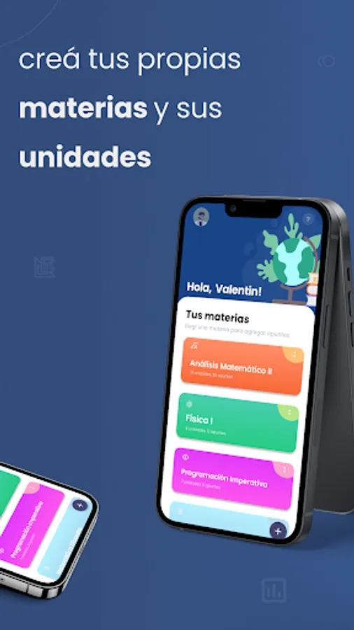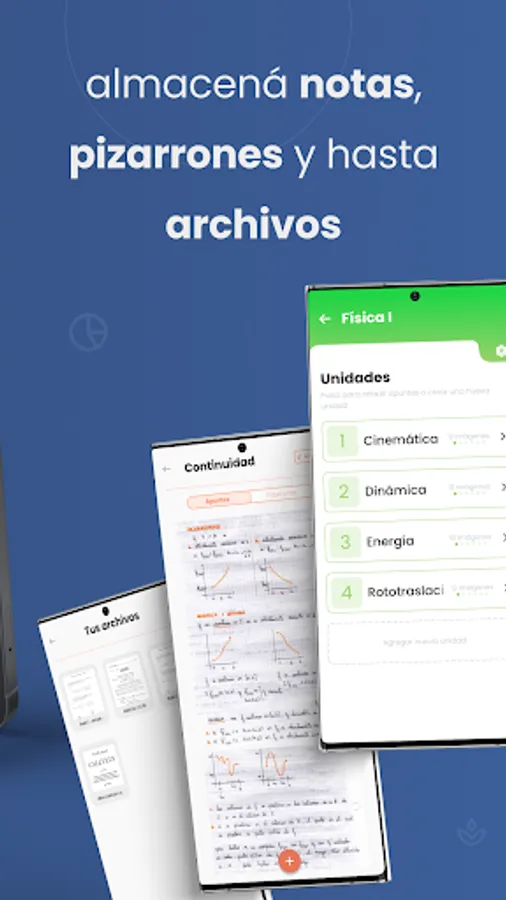 Dentro de cada materia, tienes la opción de crear unidades temáticas para una mejor organización. Agrega imágenes o archivos útiles, como documentos PDF, DOC, PPT y videos, y mantén toda la información relevante en un solo lugar. Esto te ayudará a tener un seguimiento claro de tus estudios y a revisar de manera eficiente cuando lo necesites.