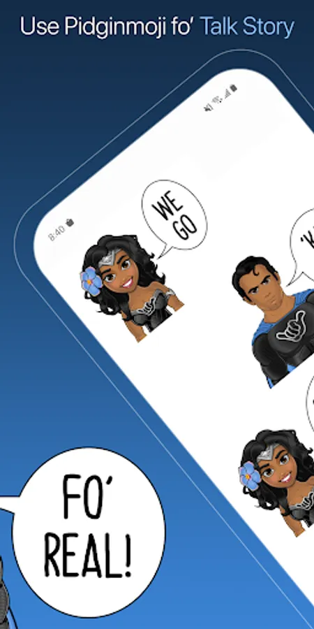 Use Pidginmoji Heroes fo’ let yo’ friends know dey da bes’