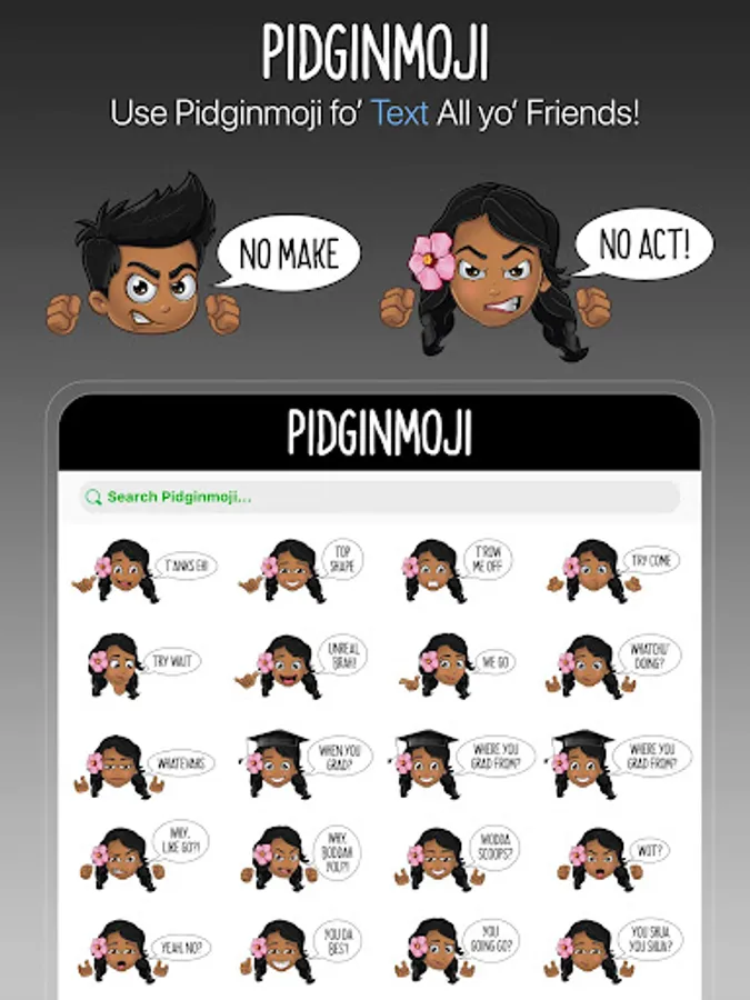 Use Pidginmoji fo’ let yo’ friends know dey da bes’