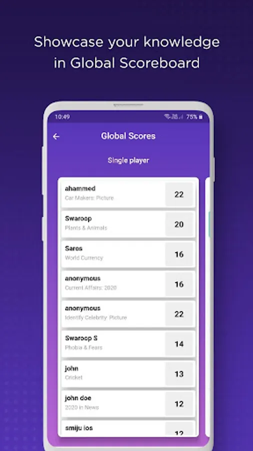 This multiplayer, general knowledge quiz app is a packet of information that is designed to be shared with your friends. Knowledge is power and power is gained by sharing knowledge. It forms an ultimate multiplayer GK quiz app that supports up to 4 players at a time. This quiz can also be played as a single player, with a random opponent or even with your group mates. You can choose a random opponent from anywhere on earth and challenge them with your knowledge power.