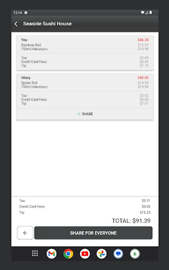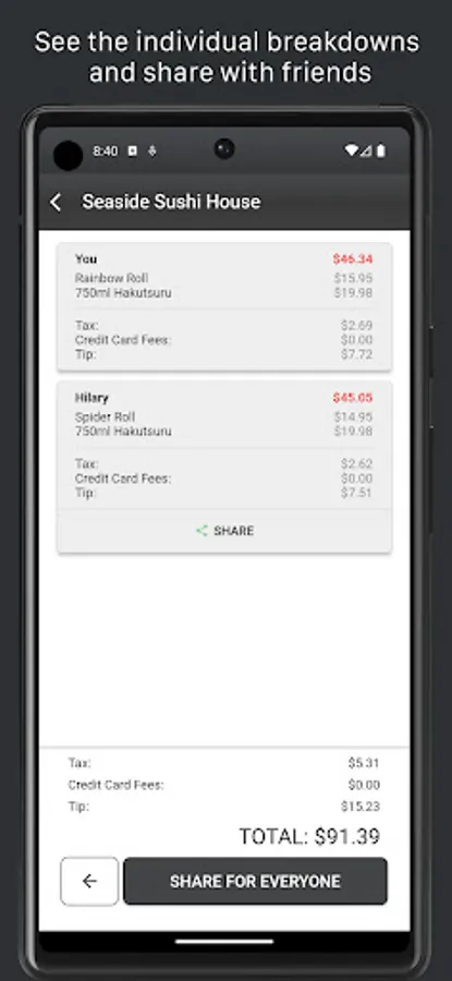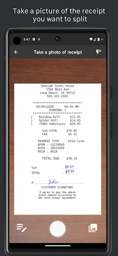 Tired of manually splitting dinner or grocery bills and chasing up everyone to pay up? Look no further than Piecemeal! Our app simplifies the process effortlessly. Just snap a photo of your receipt, and watch as it seamlessly uploads to the app. With a few taps, you can easily assign specific items to each person, allowing the bill to be automatically divided, factoring in taxes and tips, ensuring everyone knows their share. And when you're ready, share the bill with your friends using your favorite social media platforms. Say goodbye to bill-splitting headaches and hello to the smooth, efficient experience of Piecemeal!