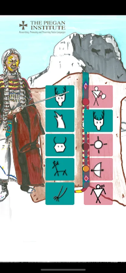 See different Piegan Pictographs organized into categories, each one playing the audio of a native speaker when touched.
