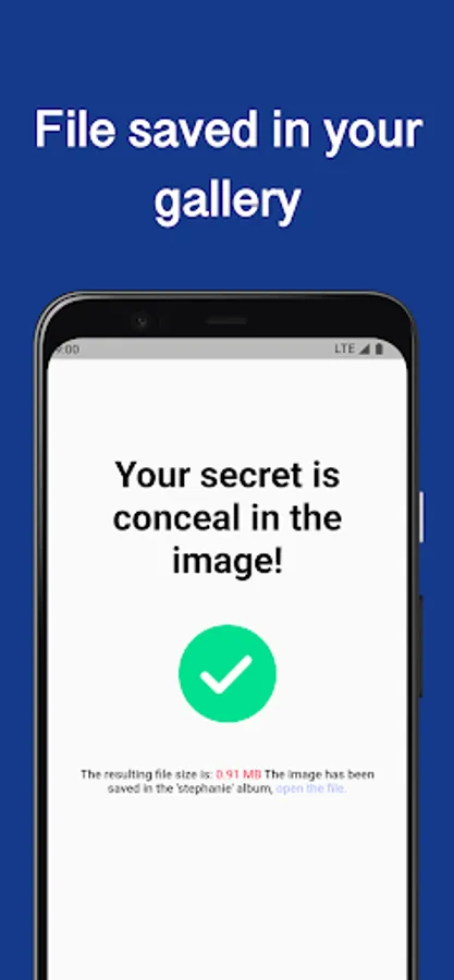 Stephanie is a mobile application that hides a file (.jpg, .png .mp3) in a photo, and allows you to get a previously sewn file in the image. Experience steganography on your mobile device!