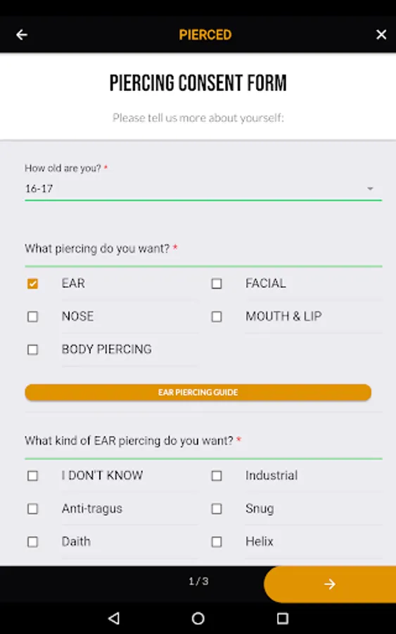 The new PIERCED booking mobile application allow customers to create appointments for piercing and tattoo services. The app also has a administrative dashboard for piercers to manage the services to be executed.