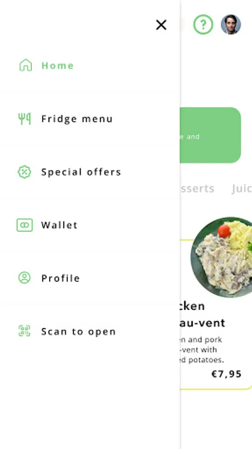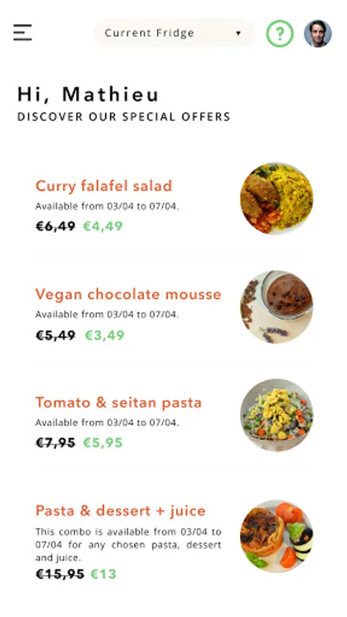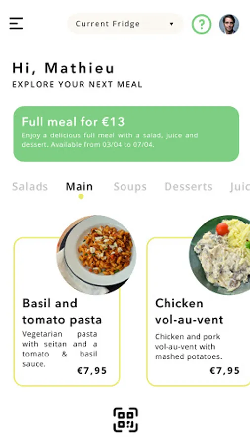 The app also allows you to open a refrigerator door by scanning its QR code. The user collects the products.