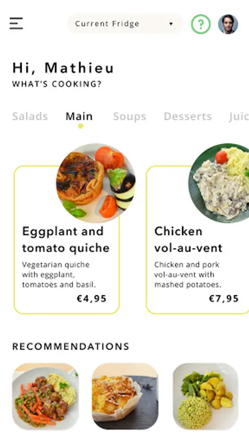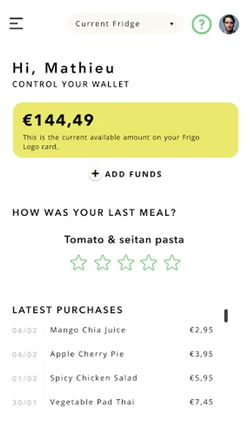 The app allows you to select a refrigerator from a list, based on your user profile.