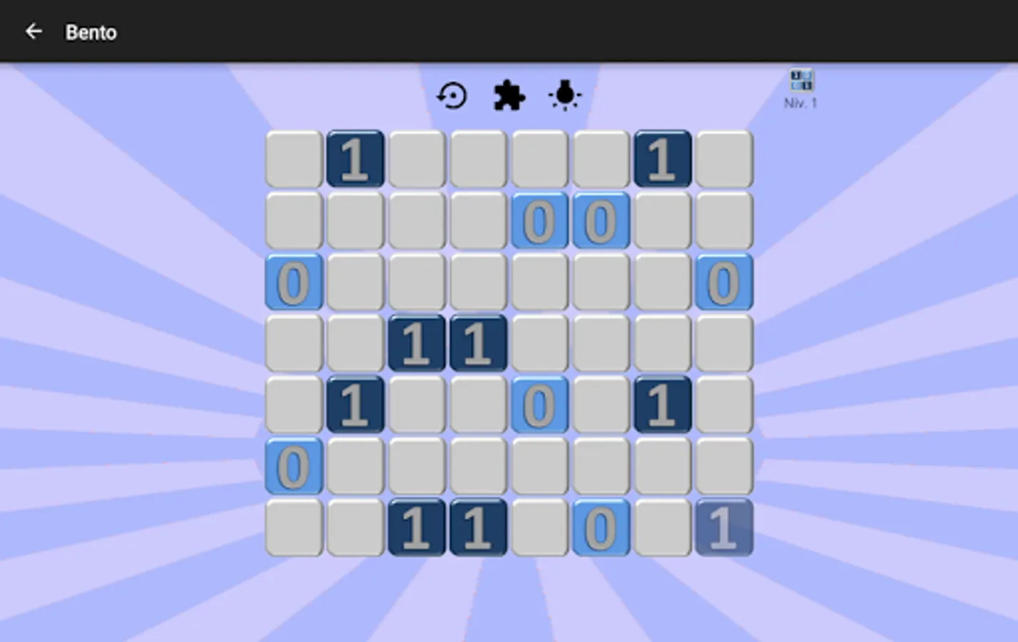 This little logic game is usually a grid of 8x8 squares, containing just 1 and 0, and which must be completed according to three simple rules: