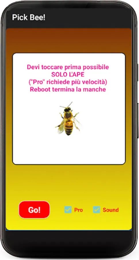 Are you sure you recognize a bee on the fly? Do you know that the future of humanity depends on the bee (which, in addition to giving us honey, also takes care of the pollination of fruit plants)? This App is bilingual (Italian and English with automatic activation according to the language set on the phone) It is possible to activate a "pro" mode (which requires greater speed), activate or not the sounds, keep track of the different records and restart the 'App at any time by closing the run in progress and opening a new one.
