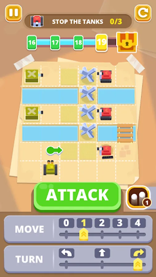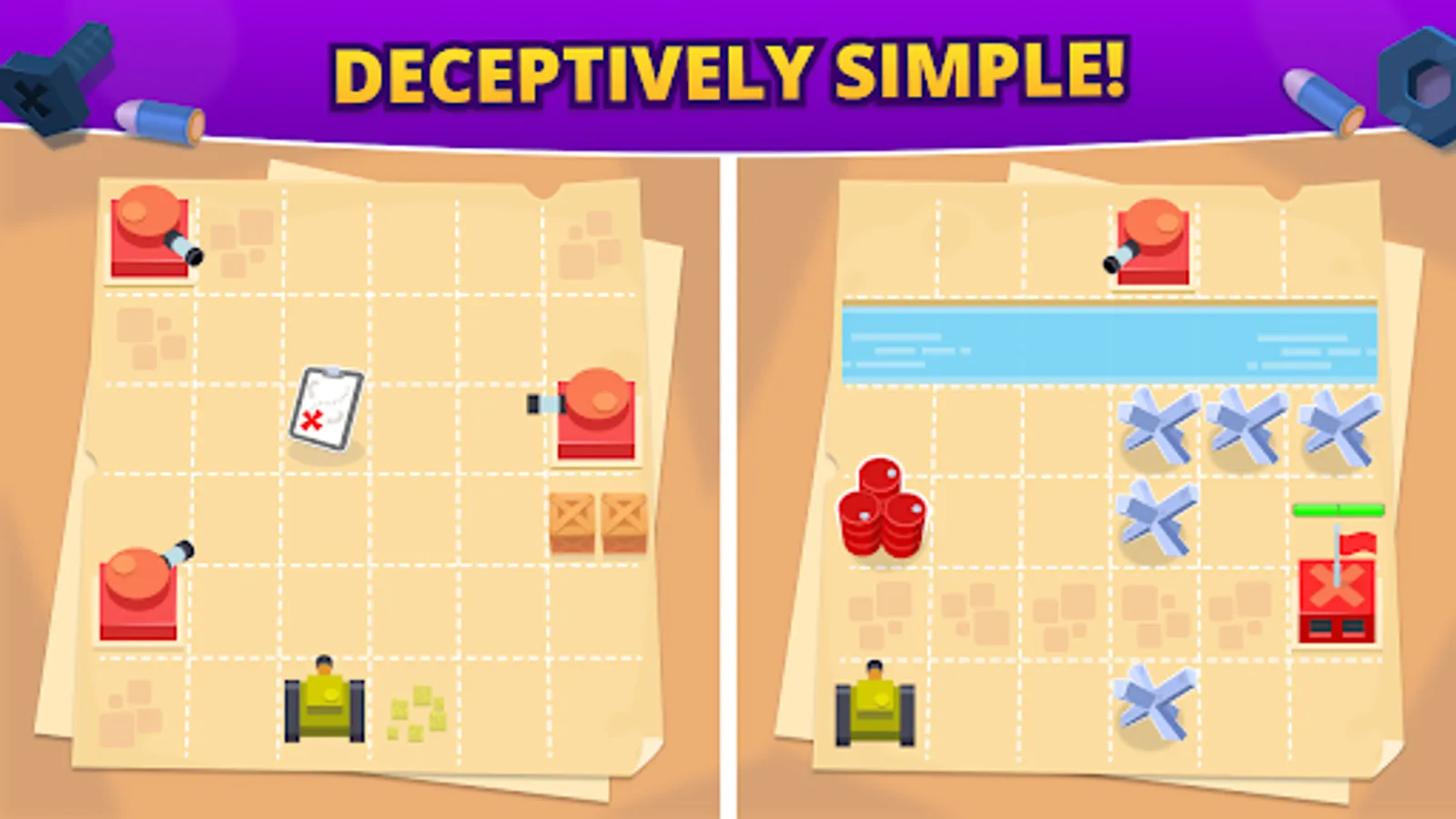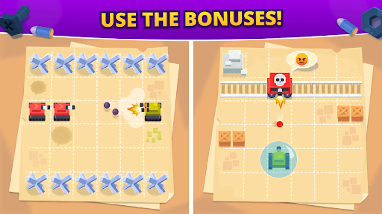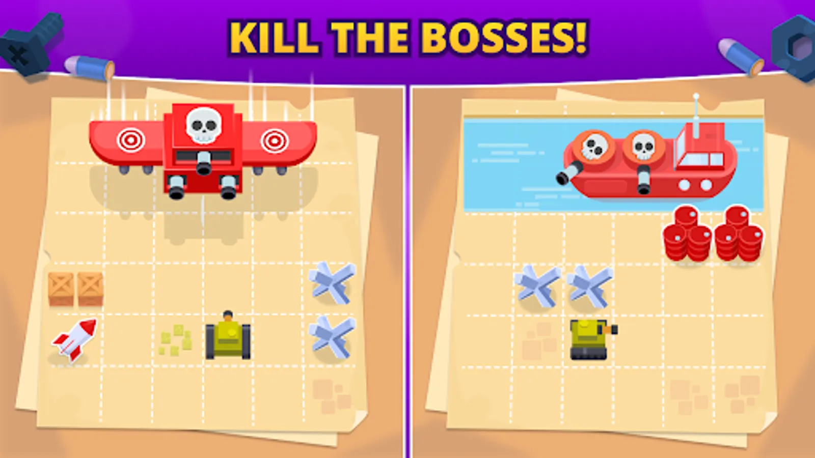 Welcome to the puzzle game! Test your brain power and lead your tank to victory! Collect power-UPS and destroy tricky enemies & big bosses. End this war in three simple actions: