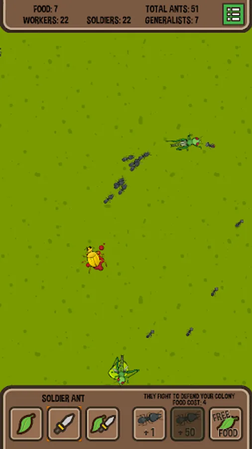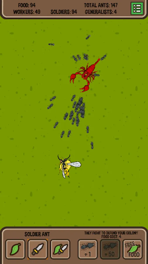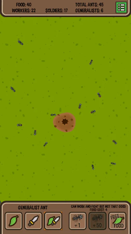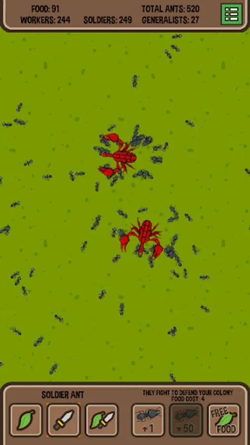 Workers: They can find and grab food for your colony but they cannot fight against enemies.