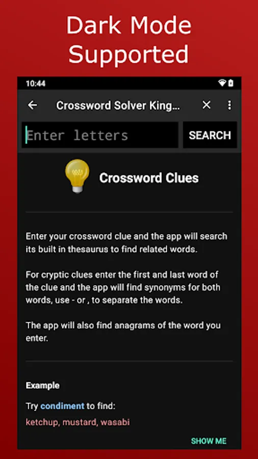 Scroll through the tips for quick reminders of all the features. There is also an online user guide showing you how to use the app to crack cryptic crosswords.