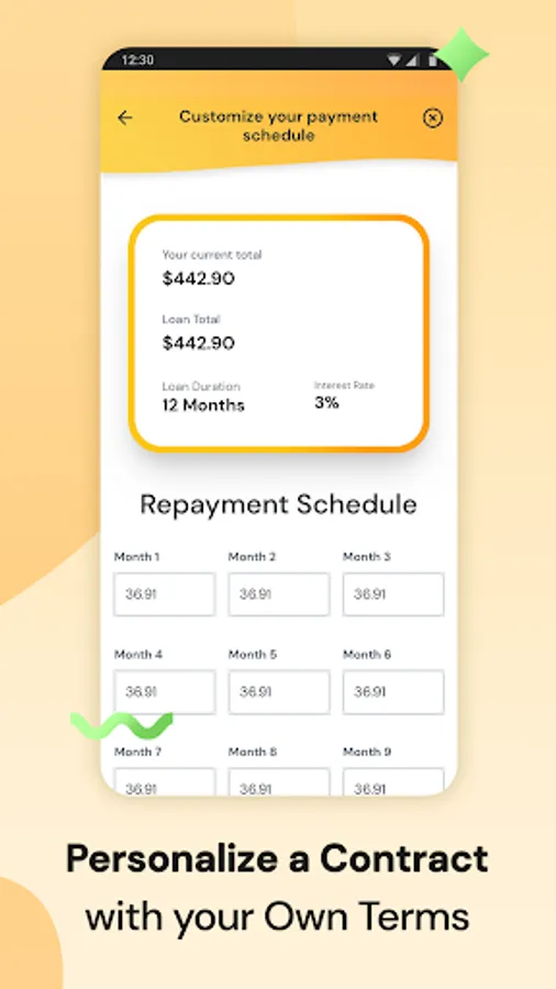 - Set your own loan terms repayment conditions, payoff period, and interest rate