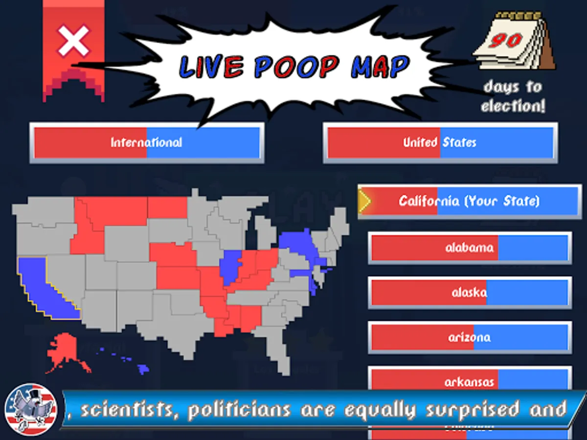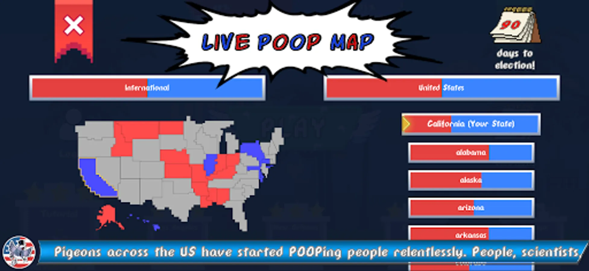 When you POOP on Trump, Biden and other people and politicians in Pigeon POOlitics, your poop counts! You can see the poop statistics in different states and predict the election better! There are thousands of pigeons around the country pooping on their rival political party.