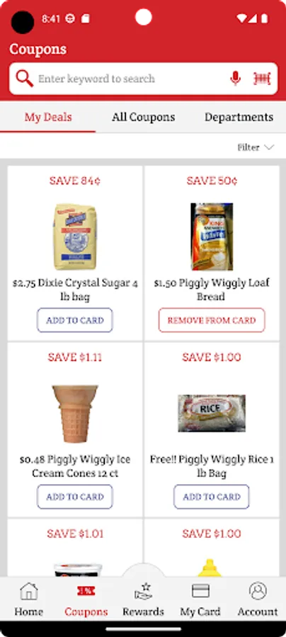 2. Adding coupons and specials to your list in your Piggly Wiggly Country Fresh App, and