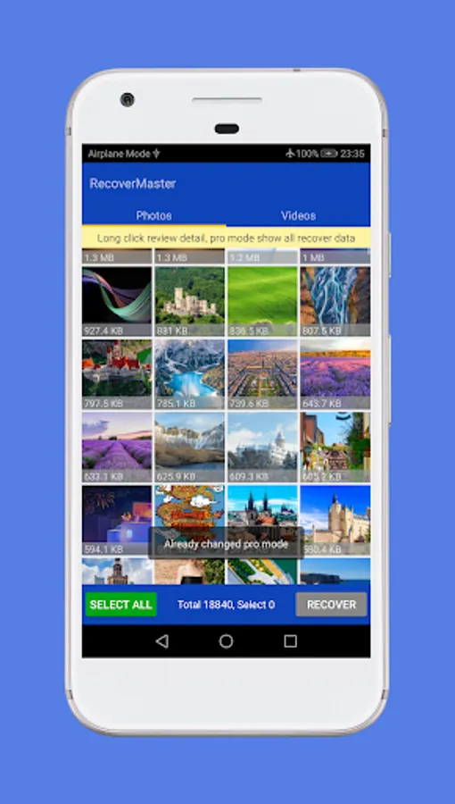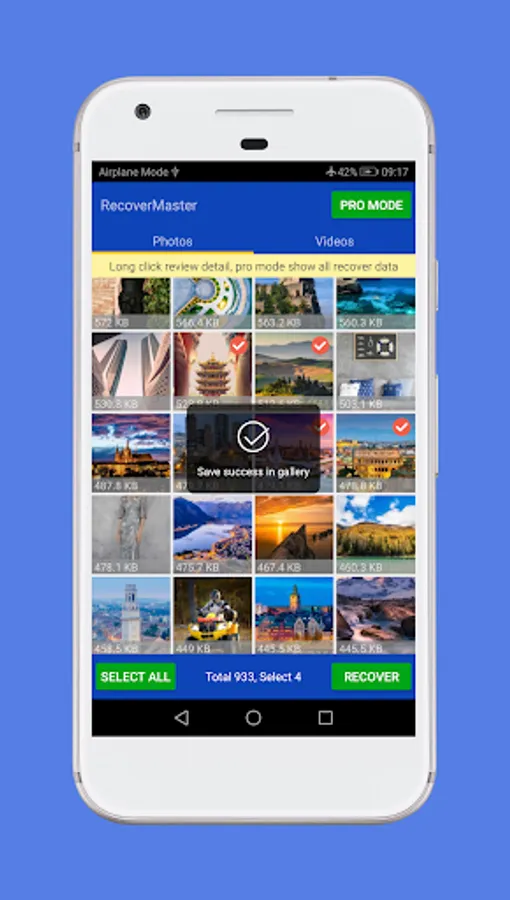 ★ Pro Mode - Default scan will show the filter recover and retrieve deleted photos, retrieve deleted images, retrieve deleted videos.