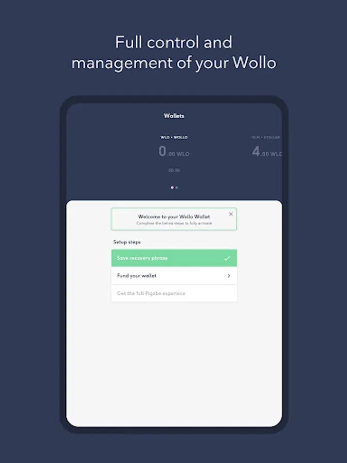 The Wollo wallet provides an easy way for Wollo token holders to: