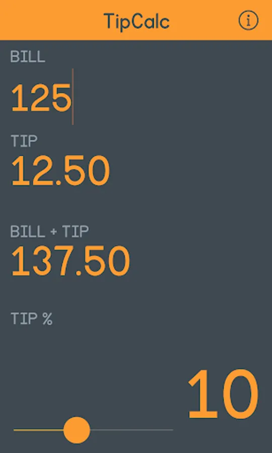 Just enter the bill amount and slide the wanted tip percentage with the slider.