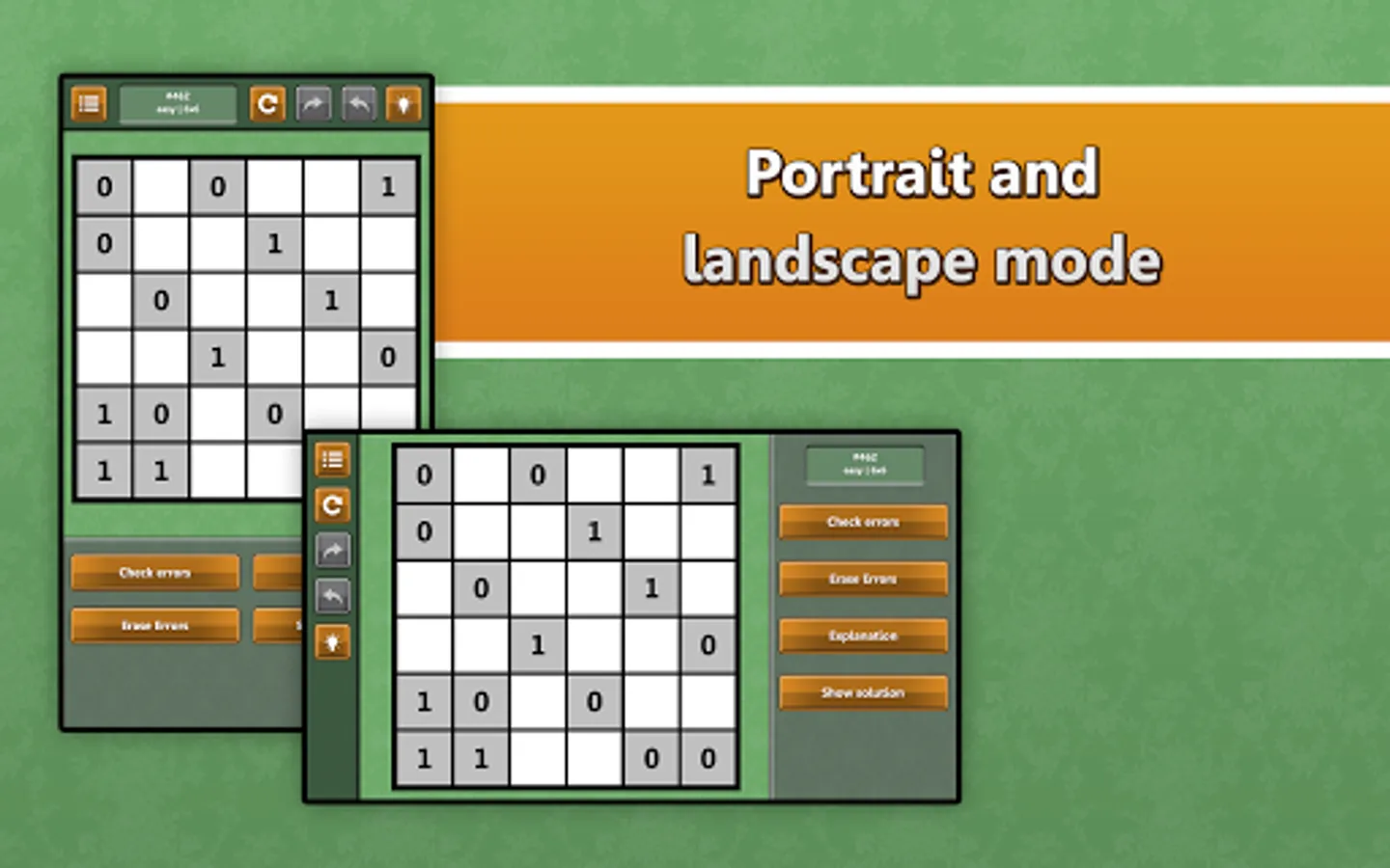 LogiBrain Binary is a challenging logic puzzle game. Although the binary puzzle consists only of zeros and ones, solving is certainly not easy.