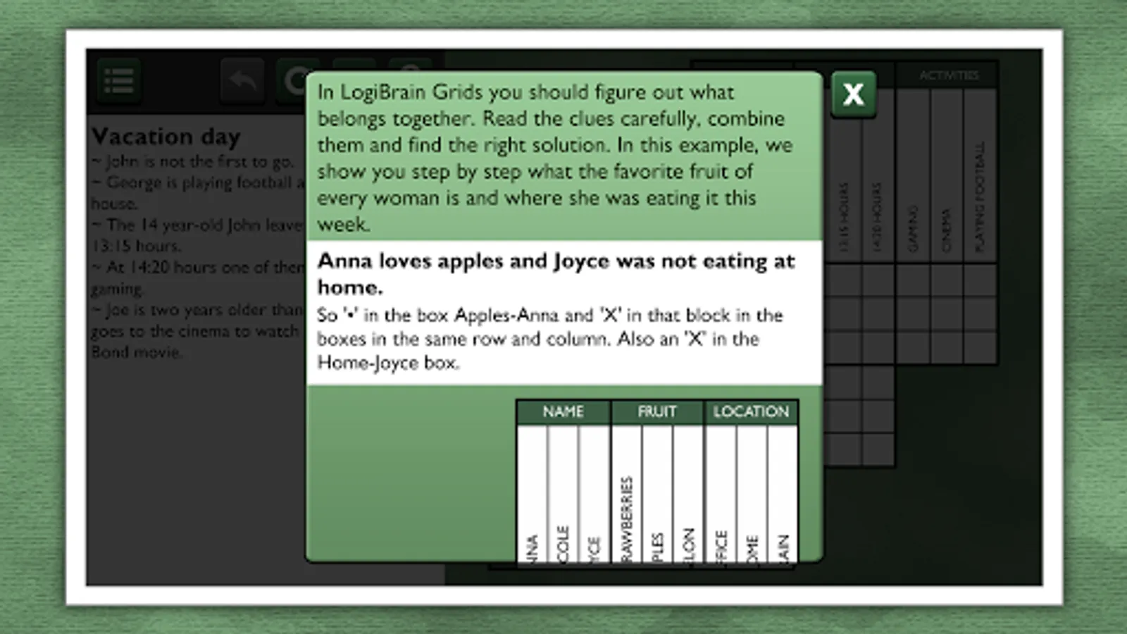LogiBrain Grids is a grid-based logic puzzles game. Solve these logic puzzles to keep your brain sharp!