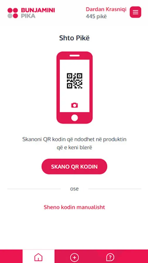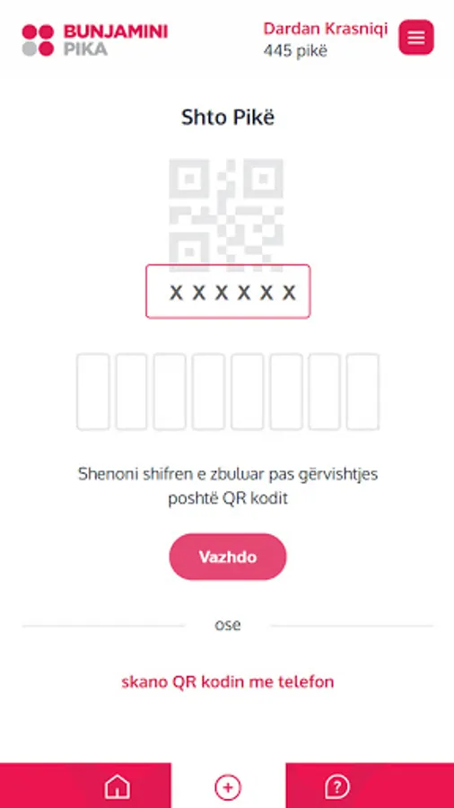 If you have problems with the QR code, then open the point.bunjamini.com page (register or open your account) and click "Add point". Then click "Enter code manually". After completing the 8-digit code and clicking "Continue" you will receive points in your account in the points system point.bunjamini.com.