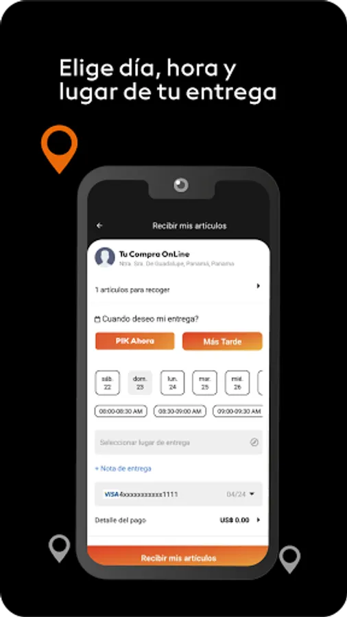 1. Cuando tienes un artículo disponible para recibir, elige si lo deseas inmediatamente o programa el día hora y lugar que sea más cómodo para ti.