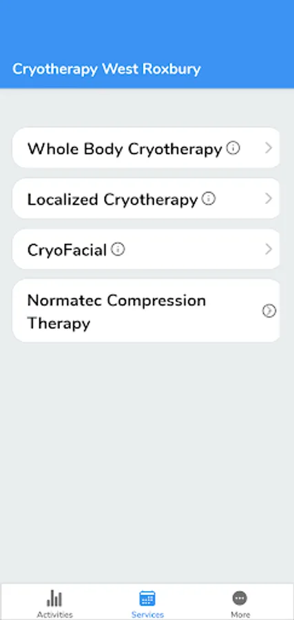 Come feel the freeze at Cryotherapy West Roxbury! Let's face it, Boston life is busy! You want to feel better, healthier, faster. We make it possible for you to energize on your way to work, before picking up the kids, after a workout, etc. Offering whole body cryotherapy, localized cryotherapy, and cryofacials, it is our #1 goal is to make Cryotherapy accessible to as many people possible so that we can all feel great together. Download our easy to use, stress-free app to manage all your bookings and payments. Check availability, reschedule an appointment or even just send us a simple question or request.