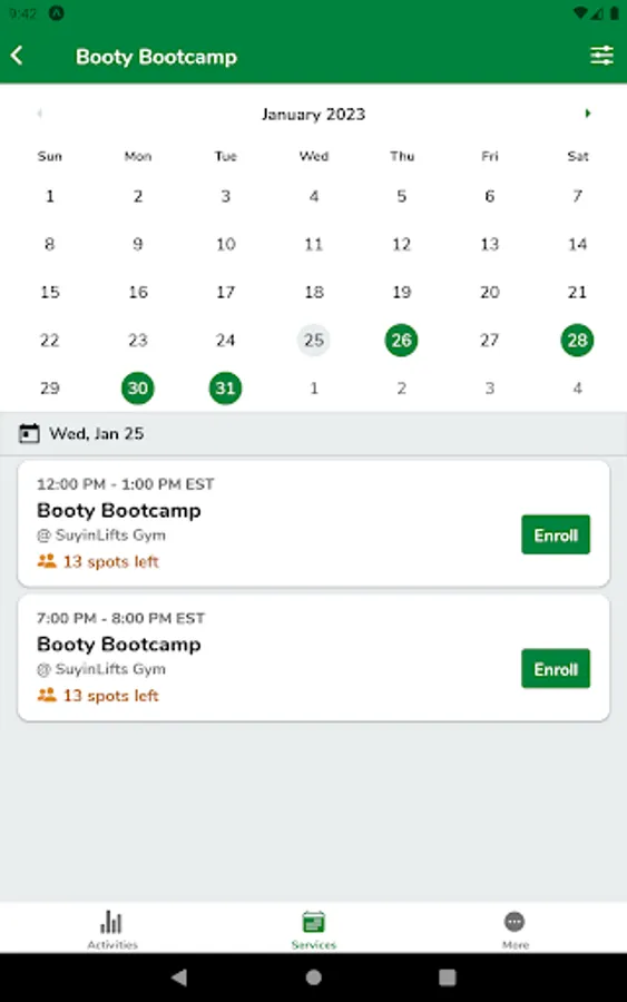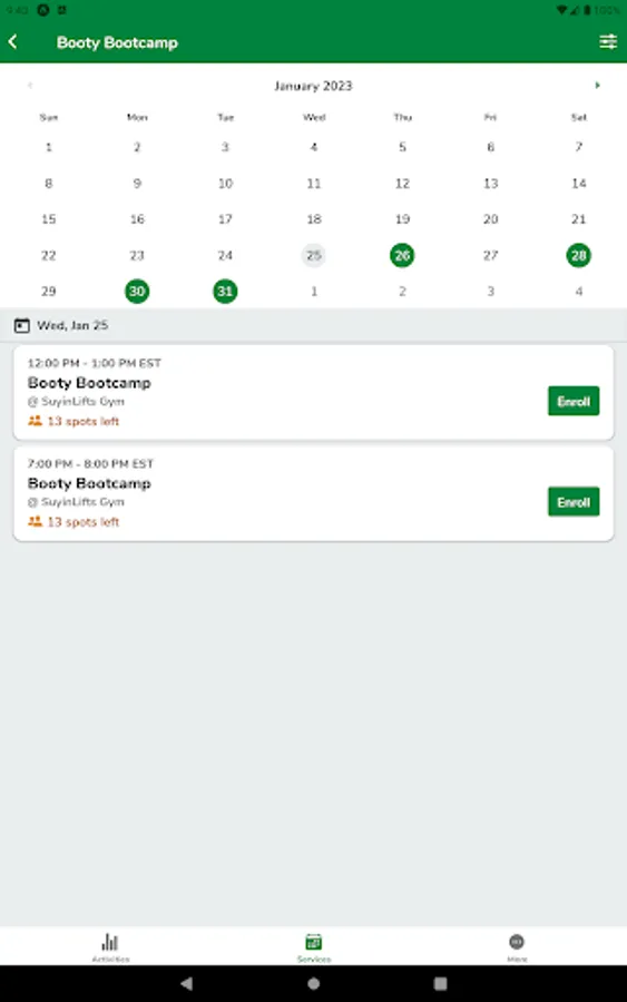 Semi private training and a variety of classes