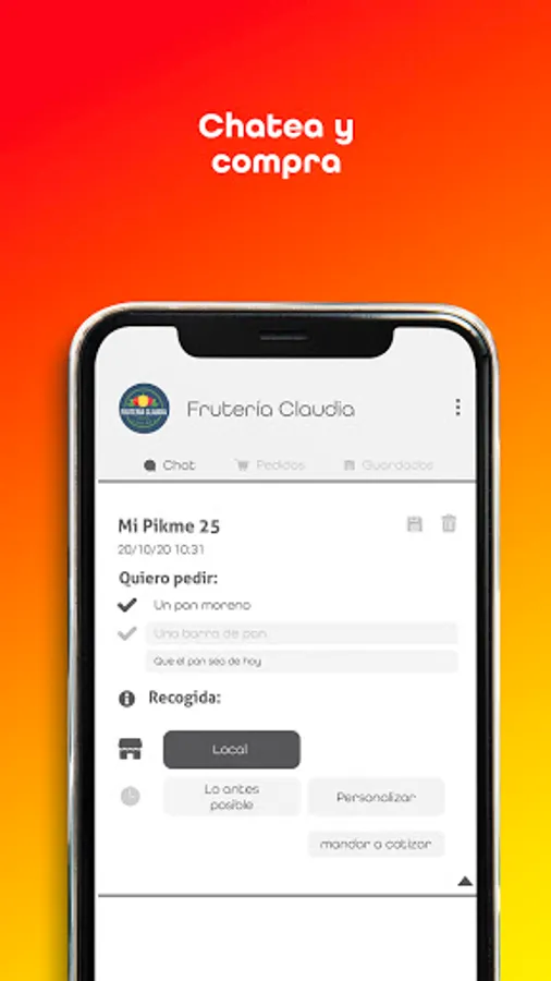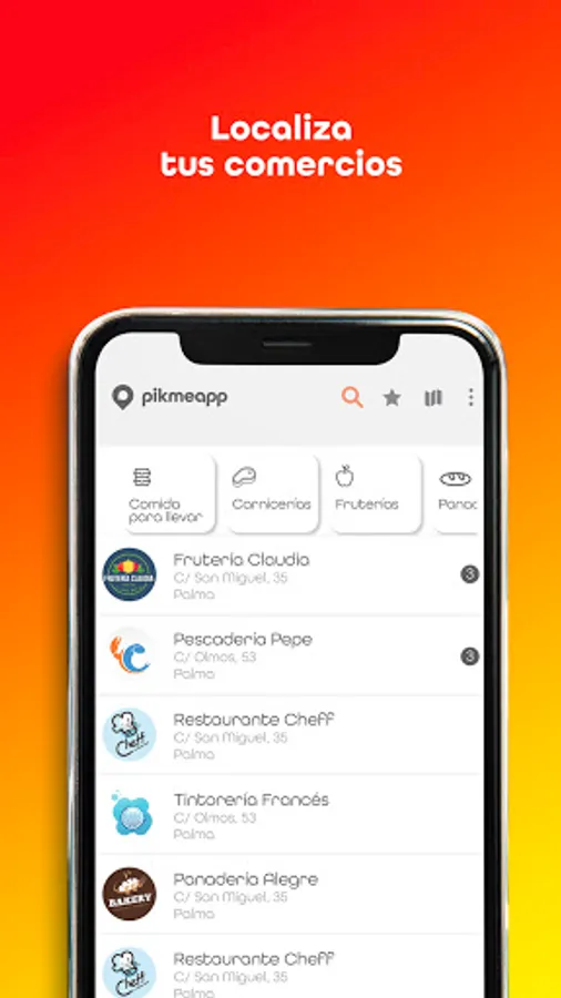 Con Pikmeapp podrás localizar todos tus comercios favoritos o los que hay a tu alrededor. Chatea con ellos, realiza el pedido y paga fácilmente. Para finalizar puedes ir a recoger tu pedido sin colas y con total seguridad. Todos los productos que necesites en la palma de tu mano.