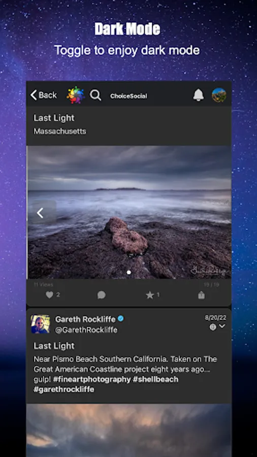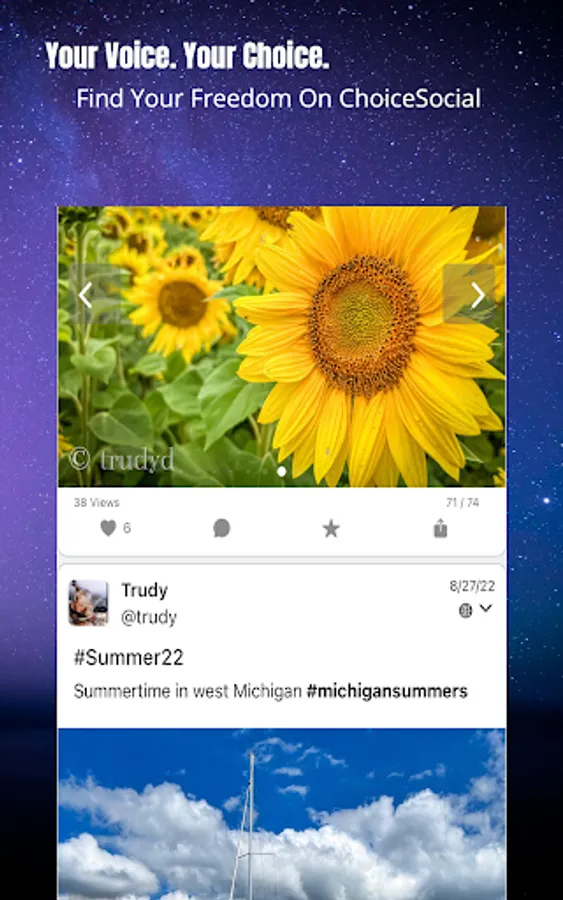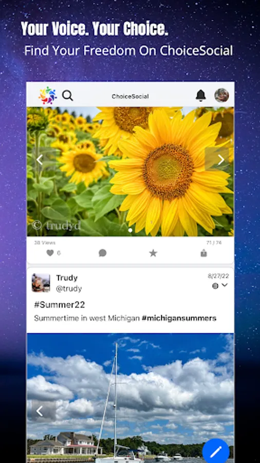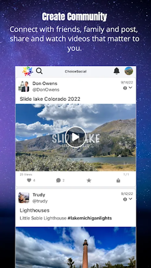 ChoiceSocial by PikMobile® is a free social network connecting friends sharing life by posting and organizing photos and videos into shareable Stories. All digital images are in an ad-free library for easy access on the web or in the app. Premium features give Creators tools to offer exclusive content.