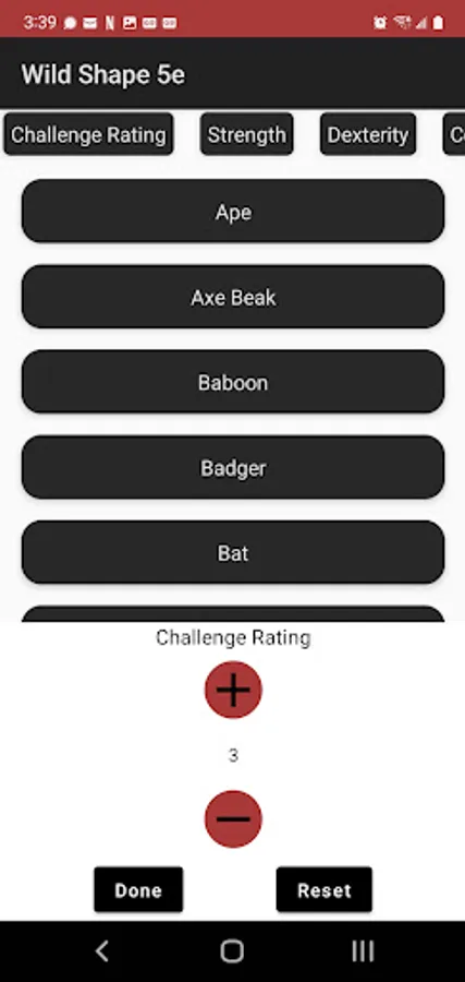 View all the beasts that druids can shift into or filter through specific attributes such as: