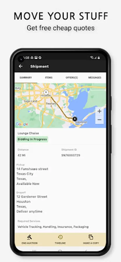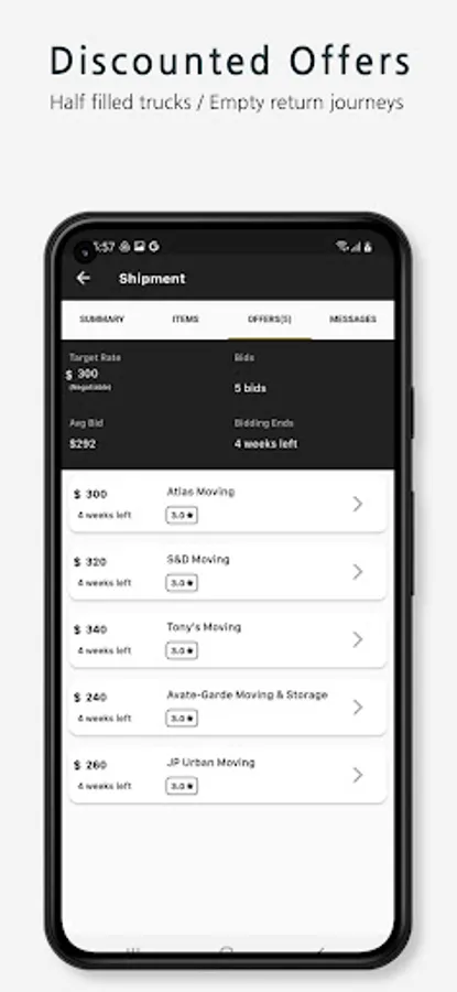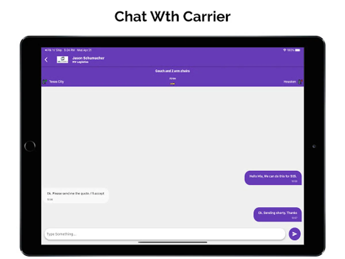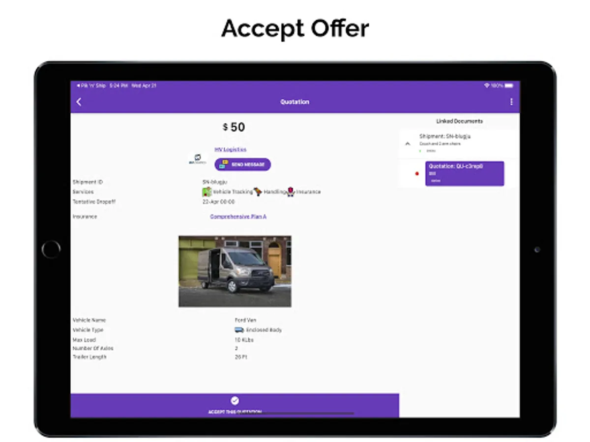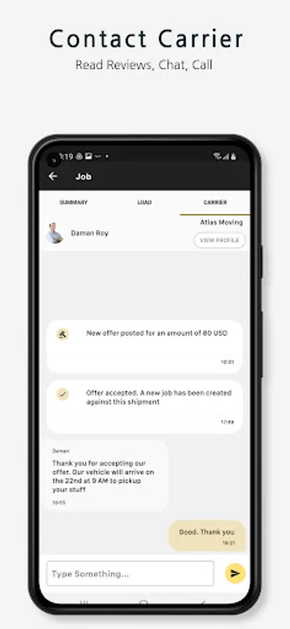 Get multiple quotations, chat with carriers, read reviews, accept quotations.