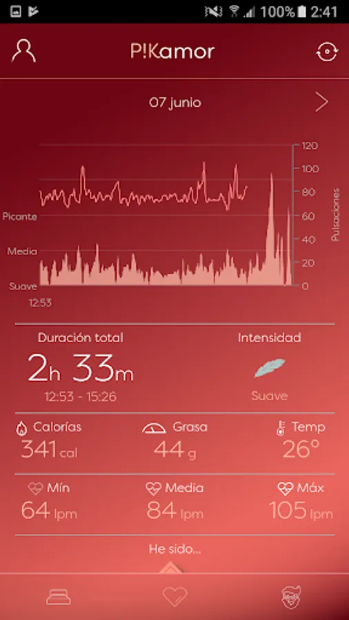 - Love mode (P! Kamor): Fun graphics with the intensity and duration of the love act. You can collect and share badges with whoever you want. In addition, we will show you the calories and fat burned, your heart rate and temperature.