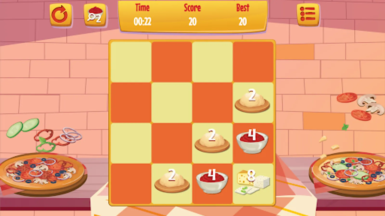 Looks like itβs finally time to dig in! But wait, the pizza slices are all over the place. Rest assured, your job now is to put them back together and then you can have all the delicious pizza slices to yourself! Push the pizza slices of the same number together and you will be in for a treat. Do your best to uncover the most appetizing pizza of them all!