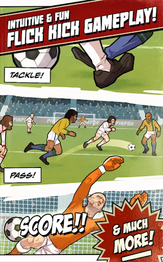 Kick it old school with the latest game in the Flick Kick series; Tackle, Pass, Shoot and More! Defeat Rivals! Win the League! Become a Legend!