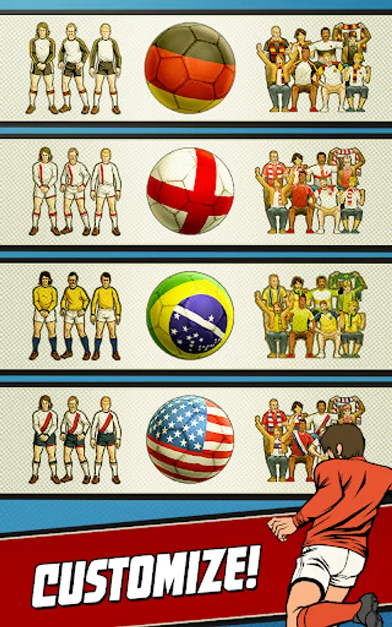 With intuitive swipe-to-shoot control, Flick Kick® Football is easy to play, but challenging to master! Flick your finger to curve, lob, drive and shoot the ball from all over the pitch. Test your skills in multiple modes, including Bullseye Mode and Time Attack! Update your team kit, ball, and fans to show your true colors!