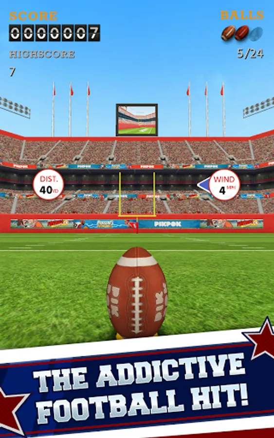 With easy to learn controls and hard to master challenges, Flick Kick® Field Goal is the addictive football game that's impossible to put down! Curve your kicks and earn rewards in ever-changing conditions. Prove your skills in the must-have game for any football fan!