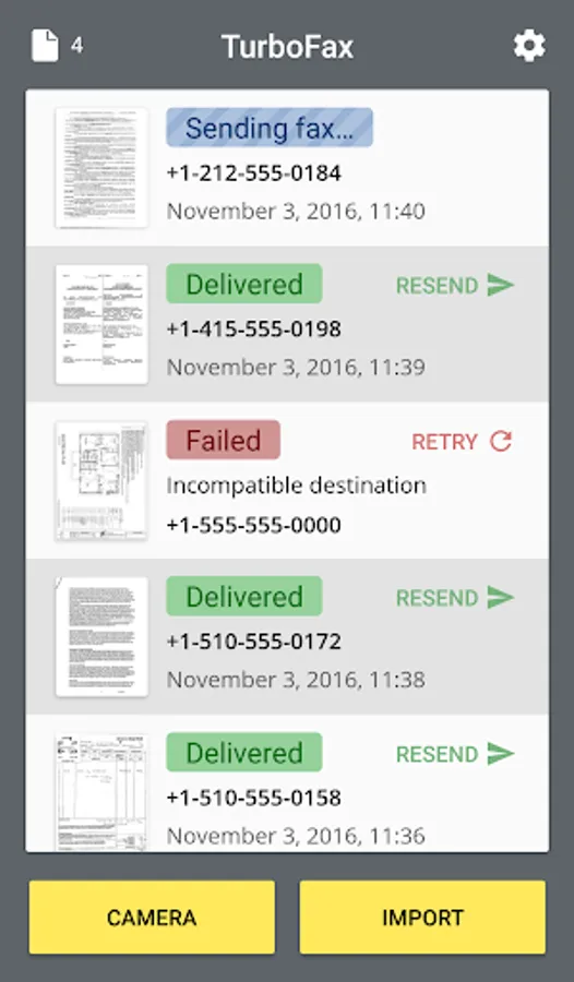 Your 1st fax page is free! Turbo Fax turns your device into a powerful fax machine for any documents, IDs, etc. Easily scan your multipage documents or import existing PDFs and fax them instantly anywhere. Get fax delivery notifications.