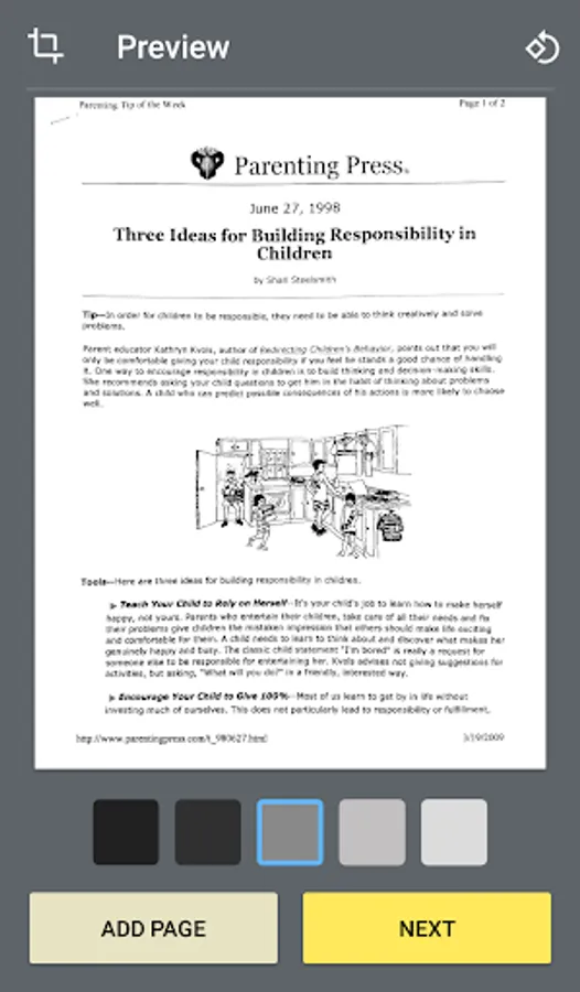 • Scan with auto edge detection, perspective correction and shadow removal.