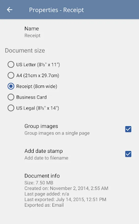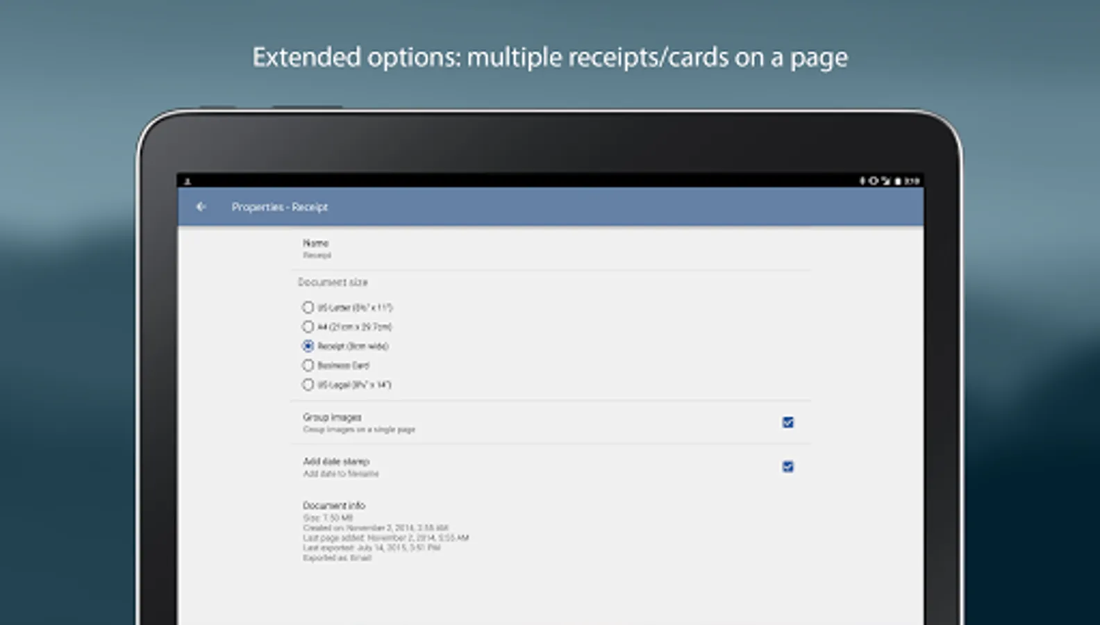 • Email document as PDF, JPEG or PNG, or save to camera roll
